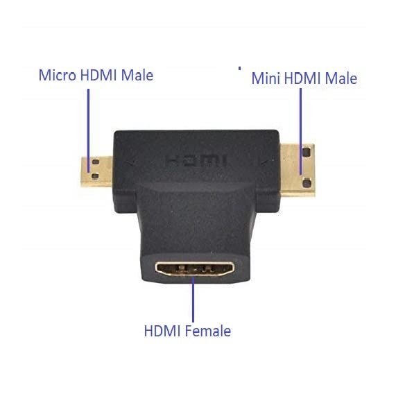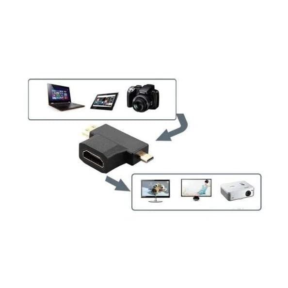 PARUHT 3 in 1 T Shape HDMI Female to Mini & Micro HDMI Male Converter Multi Adapter (NOT A Micro USB / NOT Work in Mobile)